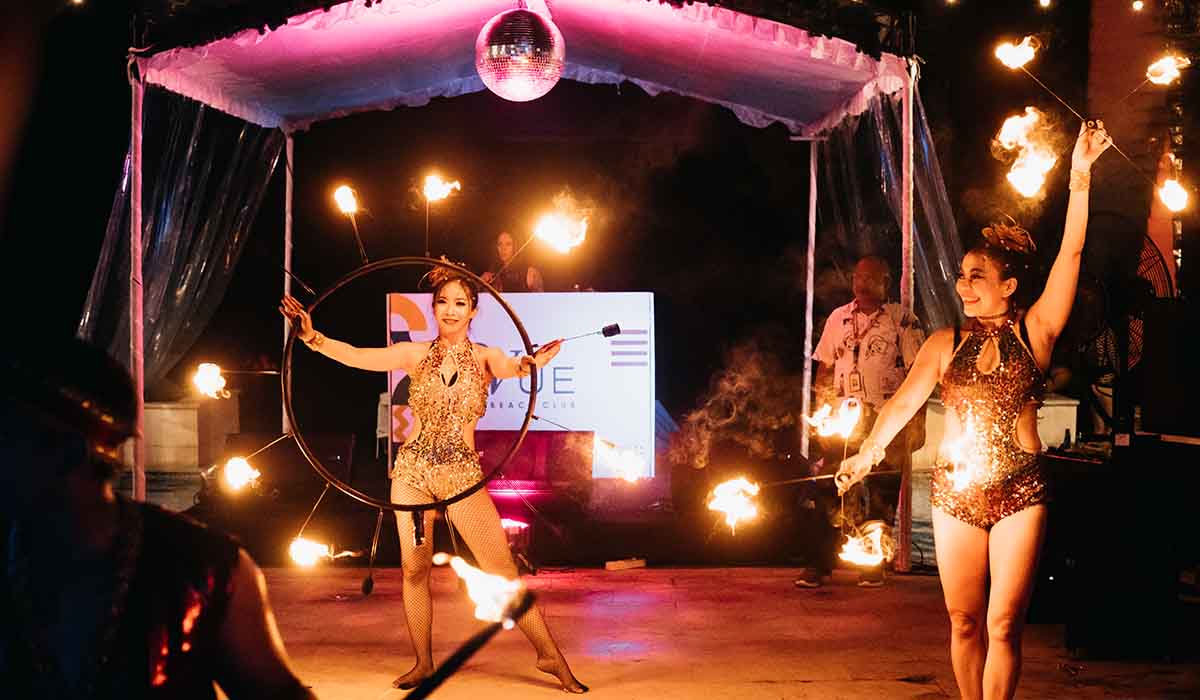 Begitu malam semakin larut, nuansa pesta pun memuncak. Vue Canggu menyuguhkan countdown party dengan live band, DJ set, tari bertema bawah laut, hingga fire dance spektakuler yang memantul indah di permukaan laut.